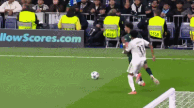 第6分钟,小尴尬,罗德里戈带球出了边线