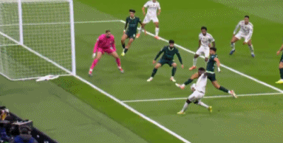 第50分钟,贝林厄姆禁区右路挑射打门,皮球没有压住